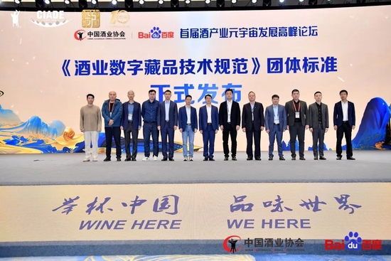 論壇發布了《酒業數字藏品技術規范》團體標準,中國酒業協會副秘書長劉振國,四川五糧液新零售管理有限公司執行董事、總經理劉曉東,會稽山紹興酒股份有限公司總經理楊剛,華潤雪花啤酒(中國)有限公司營銷中心總經理宋占民,張裕線上銷售事業部總經理孫鴻博,北京酒域靈境科技有限公司總裁銀普,百度MEG銷售業務平臺食品飲料行業負責人郭韋偉,歌德盈香股份有限公司副總裁劉劍鋒,百川名品供應鏈股份有限公司副總經理顏峻,京東零售大商超事業群酒類業務部副總經理王文博,酒仙集團采購總監趙秀華,網易區塊鏈事業部商務總監張東博共同參加發布儀式。