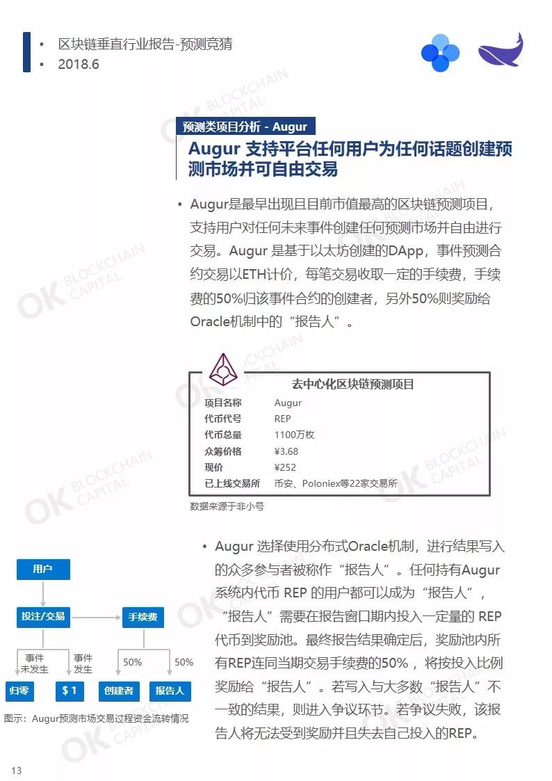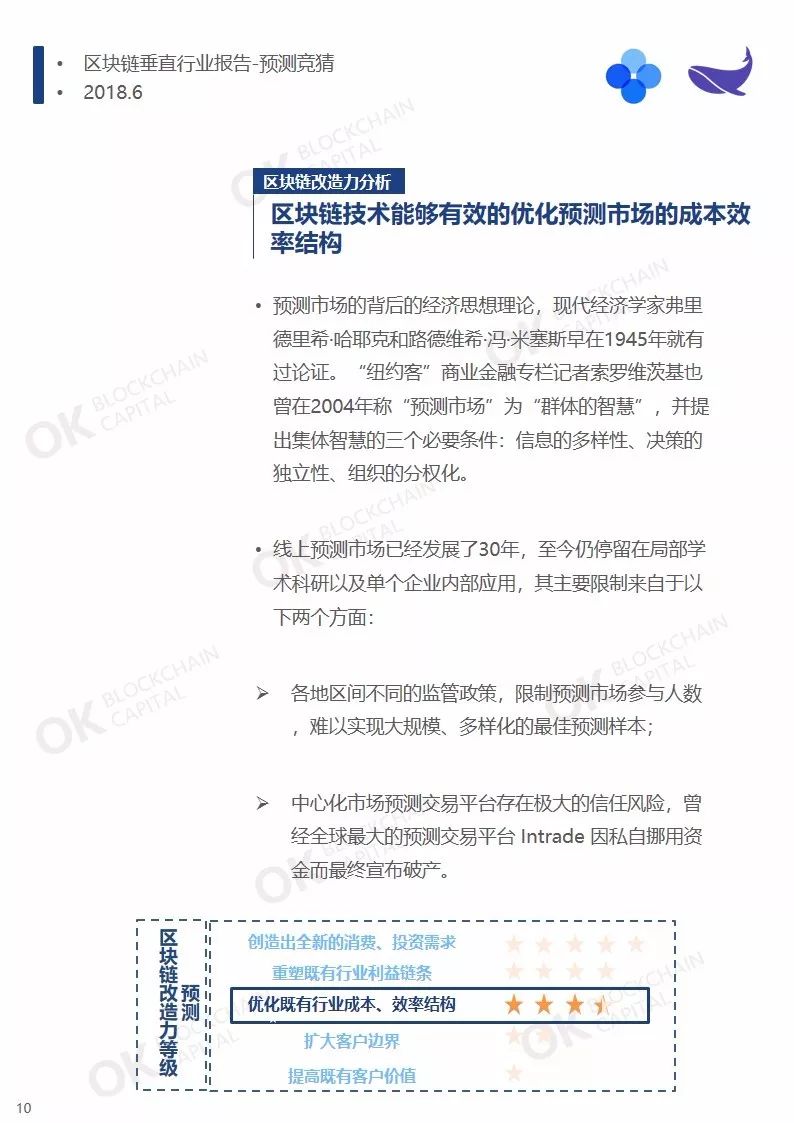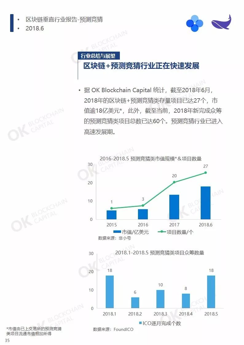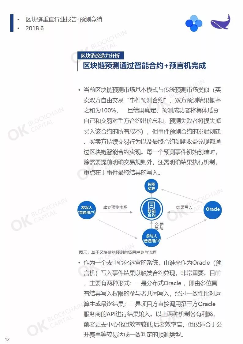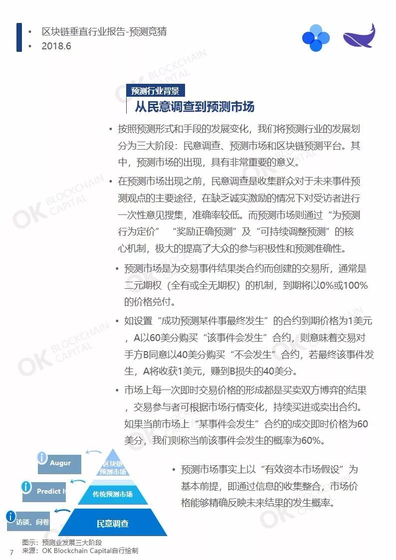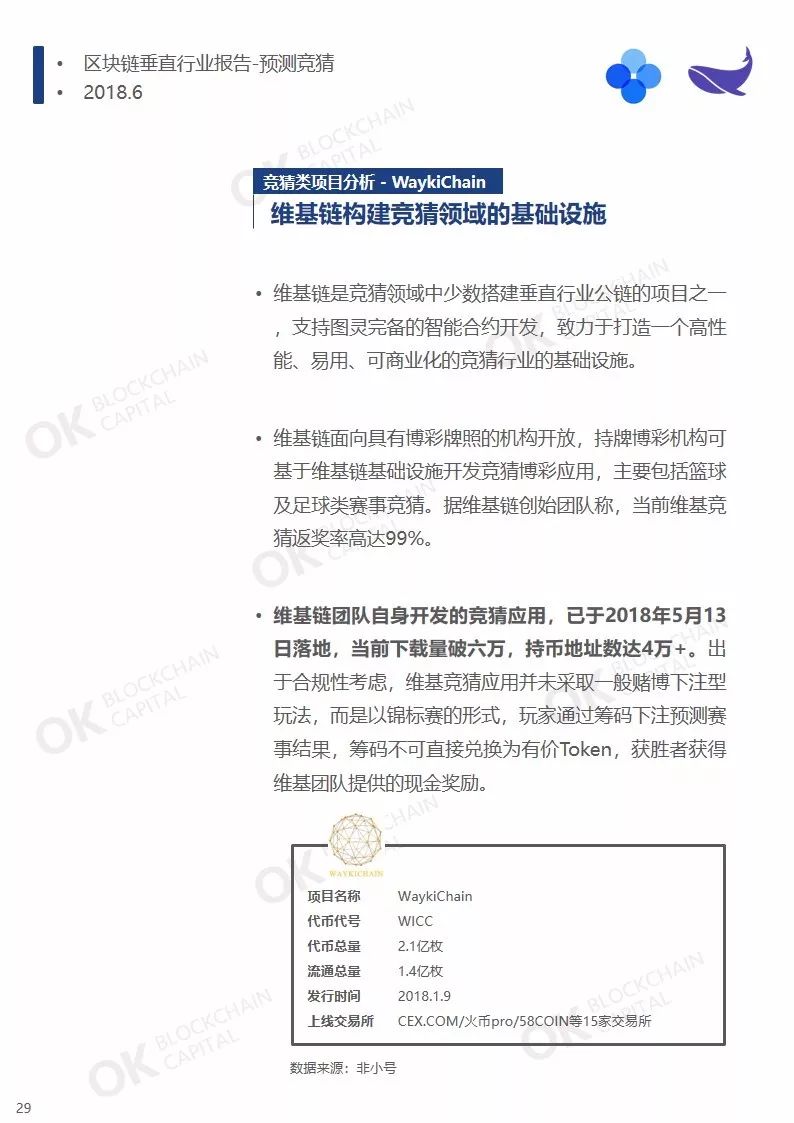 傳統預測競猜市場歷來存在著數據作假、中心化操縱等問題,區塊鏈的不可篡改、可追溯等特性以及智能合約的出現為預測競猜市場帶來了新的生機。2018世界杯的到來勢必又會引來體育行業的競猜熱潮,相關區塊鏈項目也是紛紛涌現,本報告從行業背景、區塊鏈的改造力、代表項目、行業未來趨勢等多個方面對預測競猜行業進行了解讀。其中,在競爭力方面,我們認為預測領域為了支持更多類型事件預測,Oracle數據是否能夠全領域覆蓋,滿足及時性和穩定性的要求至關重要;競猜領域,彩票類項目牌照成為非常稀缺的資源,能夠構成較高的壁壘。賭博類項目門檻相對較低,以賠率精算和風控為核心的開盤能力構成關鍵性競爭優勢。