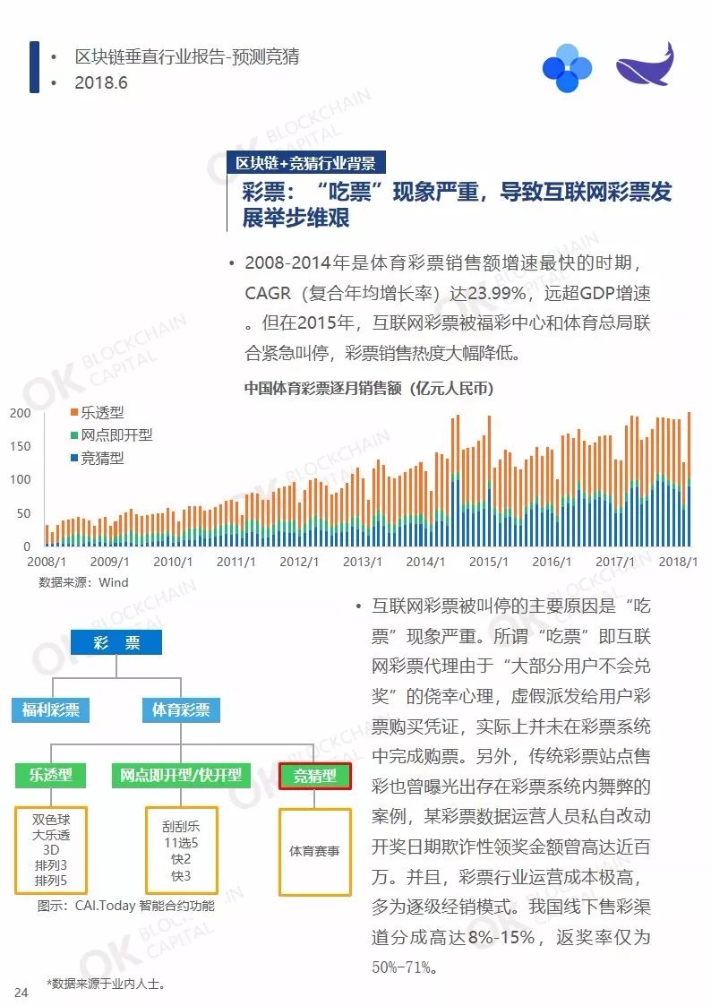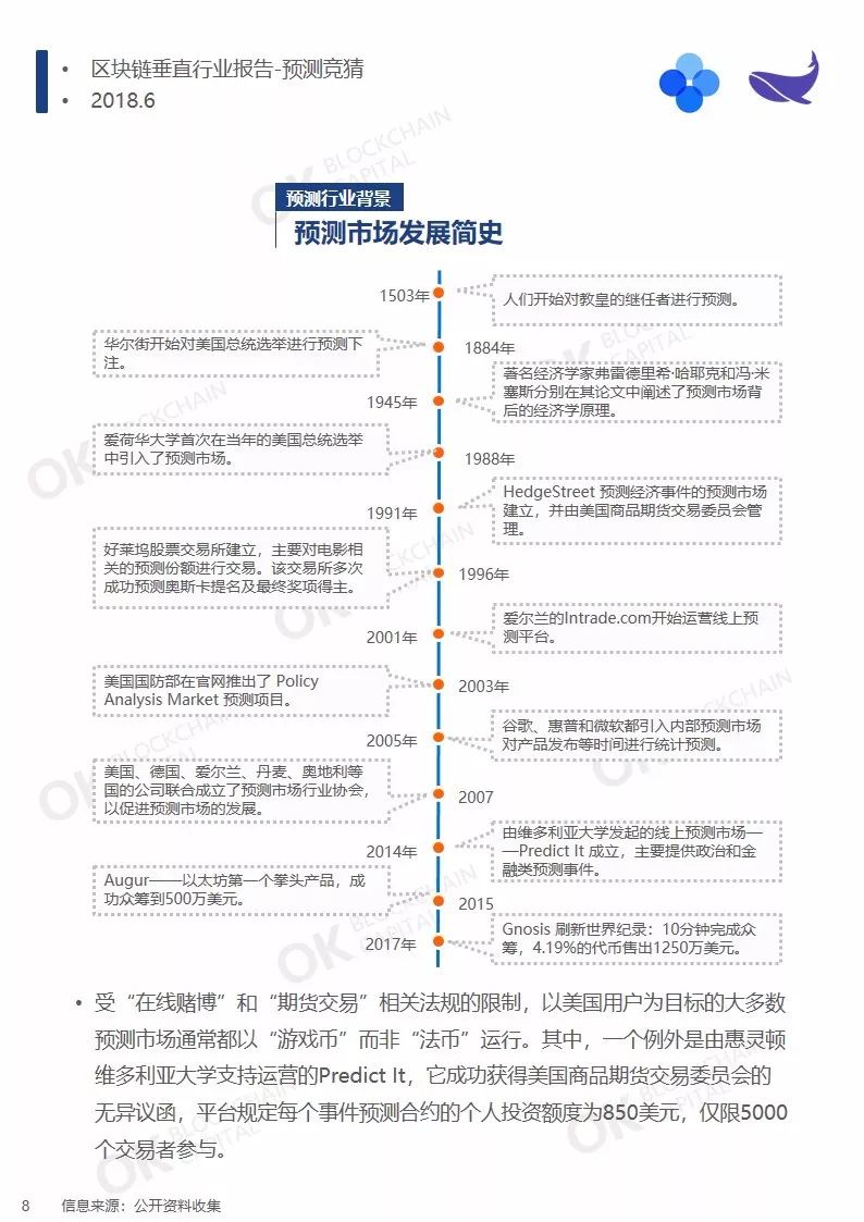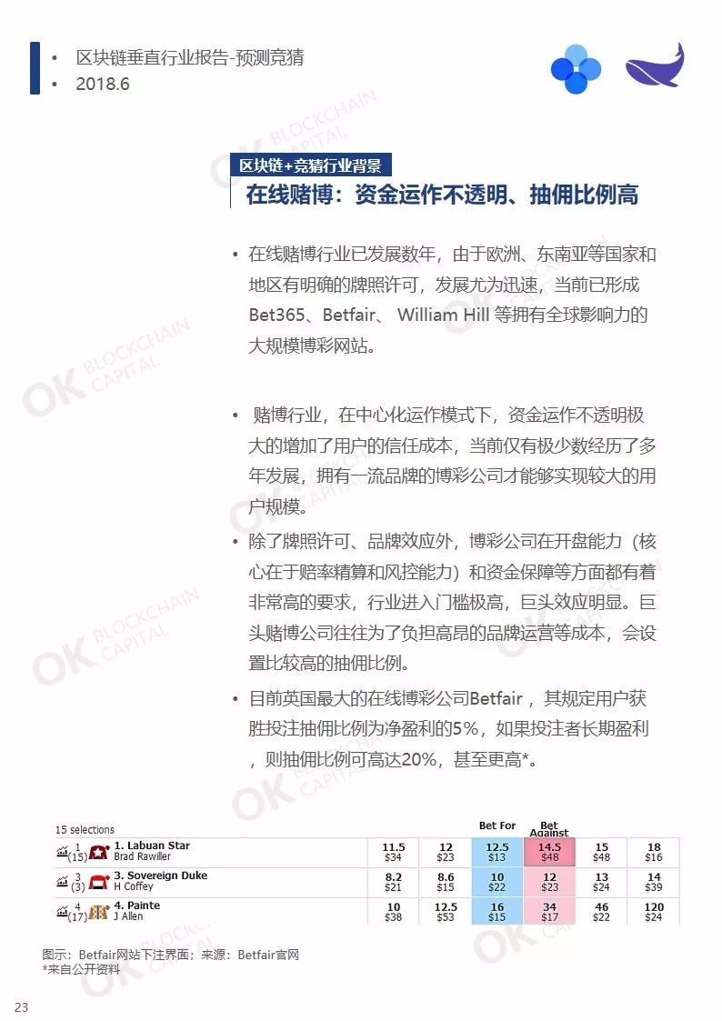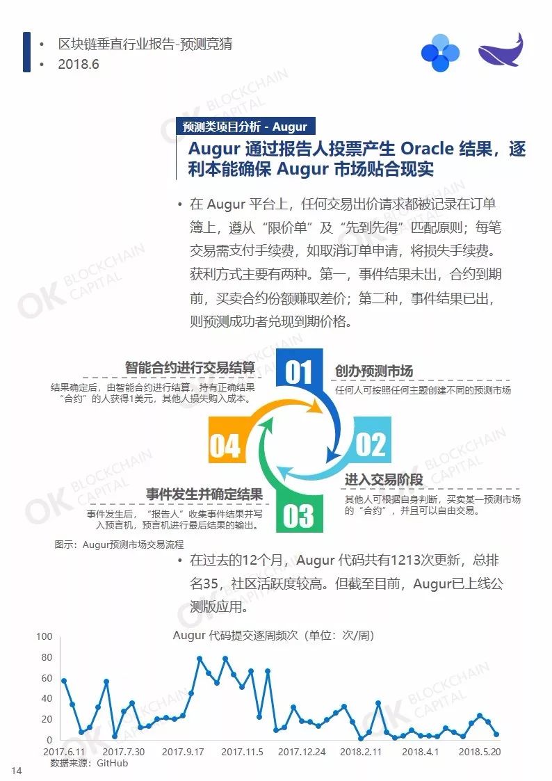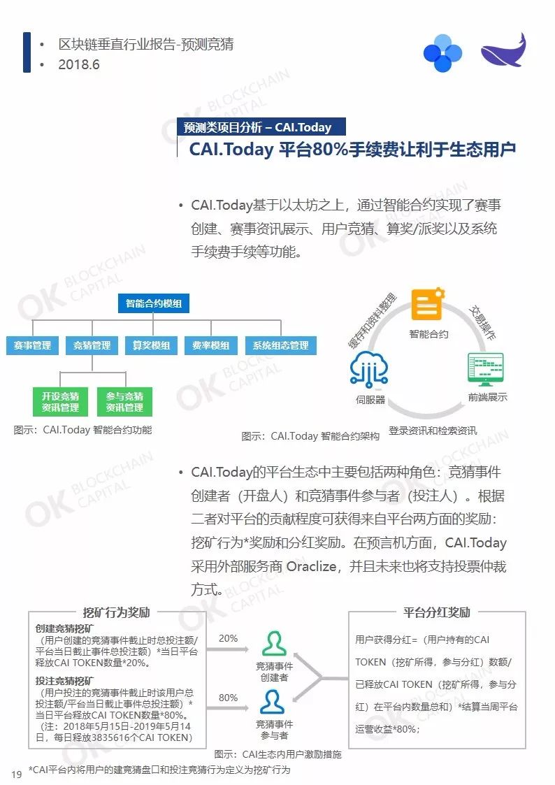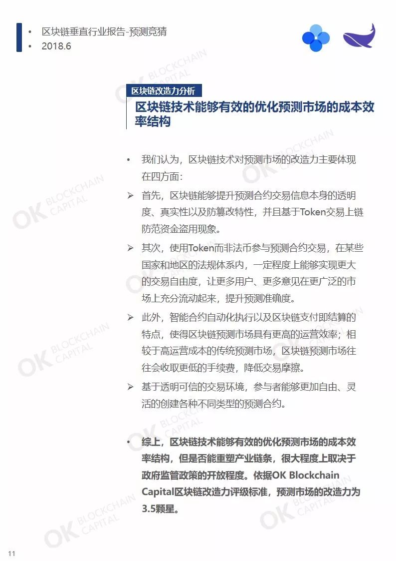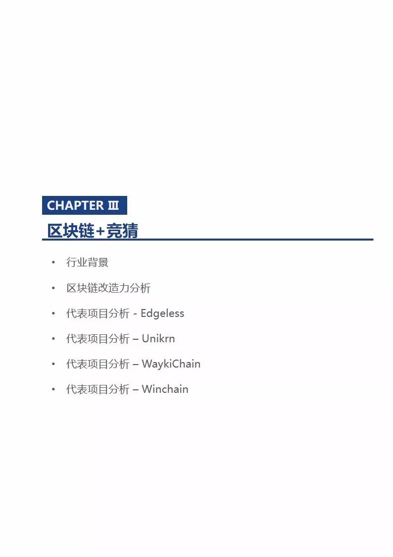 傳統預測競猜市場歷來存在著數據作假、中心化操縱等問題,區塊鏈的不可篡改、可追溯等特性以及智能合約的出現為預測競猜市場帶來了新的生機。2018世界杯的到來勢必又會引來體育行業的競猜熱潮,相關區塊鏈項目也是紛紛涌現,本報告從行業背景、區塊鏈的改造力、代表項目、行業未來趨勢等多個方面對預測競猜行業進行了解讀。其中,在競爭力方面,我們認為預測領域為了支持更多類型事件預測,Oracle數據是否能夠全領域覆蓋,滿足及時性和穩定性的要求至關重要;競猜領域,彩票類項目牌照成為非常稀缺的資源,能夠構成較高的壁壘。賭博類項目門檻相對較低,以賠率精算和風控為核心的開盤能力構成關鍵性競爭優勢。